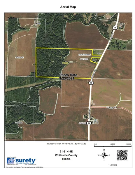 80 Acres of crop and hunting land, located south of Morrison, Illinois on Route 78. In Mt Pleasant Twp on part of Section 31. Class B soils. Property is a woodland and tillable cropland combination, 40 acres of each. Excellent investment and/or recreation opportunity. 2024 taxes paid $1,571.60.