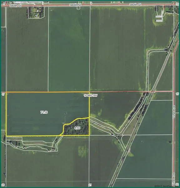 80 acres, m/l, located 3 mile SW of Grafton, IA on the south side of 380th St. Farm has 71.16 FSA crop acres with a CSR2 of 77.9.