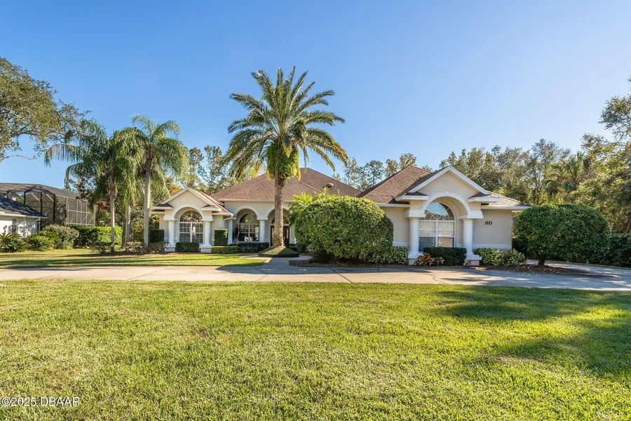 Absolutely Stunning 4 Bed 5 Bath concrete Block home in the prestigious Hunters Ridge subdivision. This 3 car Garage home sits on an oversized estate lot that backs up to a gorgeous conservation area and little Tomoka River. Dead End Street with minimal traffic. Roof Replaced in 2017. Over $100,000 in upgrades! Some of the features of this home include Dramatic 12' and 14' high ceilings, Rich hardwood floors throughout, Stunning travertine pool deck & spa, Custom bullt-ins & chef's kitchen. Fully Screened in pool area perfect for entertaining guests. The pool features an Outdoor Shower area. Top-rated schools Easy access to shops, dining & beaches. A rare find where luxury and nature meet in perfect harmony offering privacy, prestige, and the peaceful lifestyle you've been dreaming of!