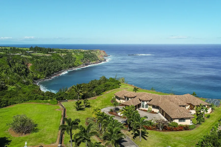 If you're looking for the finest location Haiku has to offer, look no further! This 4-acre property with a sprawling one-level custom home is perched atop a dramatic oceanfront bluff overlooking the gorgeous Ua'ou Bay in the exclusive neighborhood of Aina O Ka Hale Pili. Enjoy stunning panoramic Pacific Ocean views while watching whales and turtles play from the expansive lanai. Constructed with quality materials and the finest craftsmanship, the home includes a gated entry with porte cochere, gourmet kitchen, Mahogany windows and doors throughout, dramatic vaulted ceilings, Swarovski crystal chandeliers and wall sconces, Travertine floors, central AC, 3 1/2 car garage, security system & photovoltaic. The 3rd bedroom with half bath has a separate entry for flexibility of use. This property offers the peace and serenity most people only dream of.