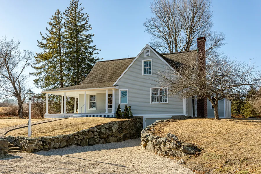 Quintessential New England Farmhouse: 80 Higbie Road in Morris CT is a rare find: 3.97 rural acres surrounded on all sides by pastoral scenery, stone walls, and views of South Farms. This restored 1938 farmhouse with a wrap-around front porch is for those who appreciate tranquility, charm, and craftsmanship. The three bedroom, three bath home located in the heart of Litchfield County is just miles away from White Flower Farm, White Memorial Conservation Center with hiking trails galore, Litchfield Town Center, and Bantam Lake. The home boasts wide plank pine floors with radiant heat, chestnut beams, plaster walls, and built-in cabinetry throughout. The sun-filled master faces east with views of grazing cows at sunrise, a cathedral ceiling, en-suite bathroom, and a walk-in closet. The flexible floor plan creates another bedroom opportunity downstairs, if needed. The sun-filled kitchen and dining room are perfect for morning coffee and gathering with friends and family. A wood burning furnace serves as a primary or secondary heat source. The back of the property has been left untouched and can be re-imagined by the needs of new owners. Currently, there are acres of mature pine trees, a shop for interested parties, as well as a spring fed pond. This home has been cared for by three generations of craftsmen, and it shows in its details, comfort, and country character.