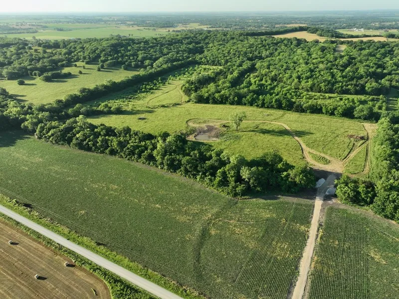 This 80.44 acre tract features incredible hunting, build-site, and investment opportunities. For the home builder or investor this tract is located caddy corner to future development locations and close to rural water. Whether you're an archery or gun hunter, this property will satisfy your big buck hunting needs. The property offers thick sanctuaries and bedding to hold a dense population of deer. Heavy timbered travel corridors allow for secluded deer movement and strategic tree-stand locations. There is no shortage of food as the property features 5 m/l acres of tillable farmland currently in a soybean/corn rotation. There is also multiple locations to establish food-plots for additional nutrition for the wildlife. Water is key to keep deer and wild turkey on the property and this farm has a variety of watering sources including a nice sized pond and a creek/ditch. Check out the impressive racked bucks and big flocks of wild turkey on the trail cam pics. Lots of gobbling in the spring won't be a problem as there are plenty of roost trees for the numerous wild turkeys in the spring as well. Property improvements include a new gravel entrance to the property and creek crossing improvements. 80 acre tracts of this caliber in a prime location don't come up for sale often! Located approximately 10 minutes from Lawrence and Tonganoxie and 20 min to Legends KC. Showing by appointment only.