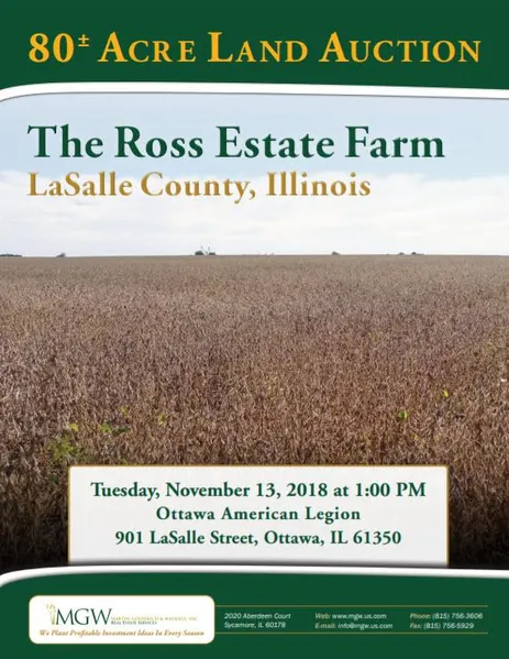 Legal Description: A brief legal description indicates The Ross Estate Farm is located in Part of the Northeast Quarter of Section 6, Township 32 North Range 3 East (Farm Ridge Township), LaSalle County, Illinois.