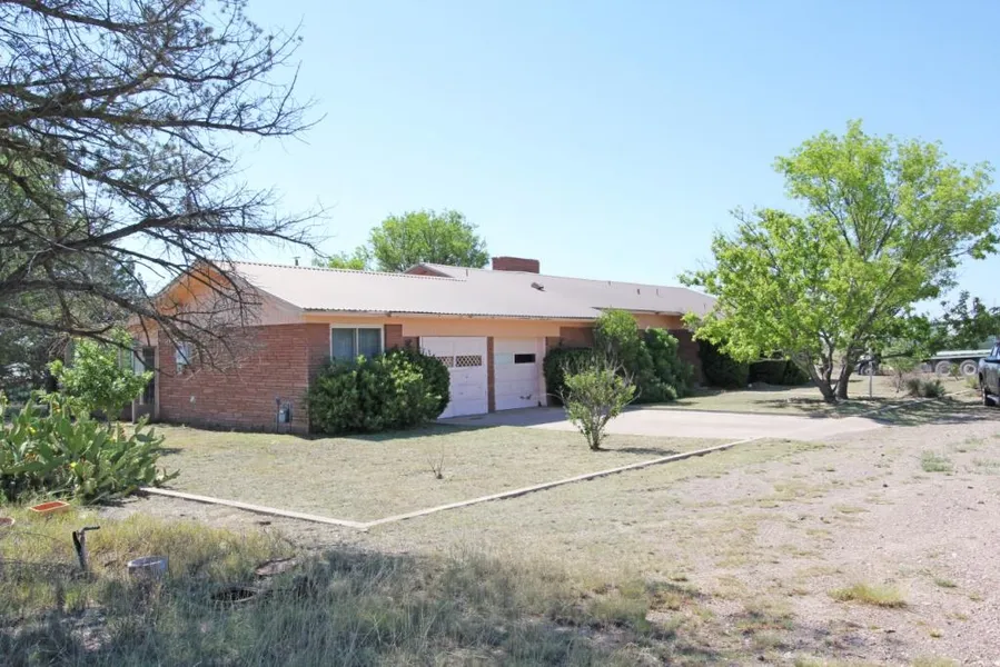 Great location and mountain views are awaiting with this 3 bedroom stacked rock home on Capote Street. A retro feel and hardwood floors are offered throughout most of the house. The open living room has picture windows that frame the mountain views to the northeast. A stacked rock fireplace is a great accent to the room. Located off the living room is a 600 sq.ft. enclosed porch with flagstone floors. A formal dining room and gas log fireplace adjoin the kitchen and a hallway leads down to the bedrooms and bathrooms from the formal foyer. The bedrooms are spacious and include ample closet space. The master bathroom has tiled walls, countertops, and floors. The guest bathroom needs some TLC but currently offers a walk-in shower and two vanities. The home has central heat & air and a 2 car garage. An additional lot next door is included with mature trees and more views of the mountains. Very quiet location on the edge of Marfa, convenient to town, shopping, and galleries.