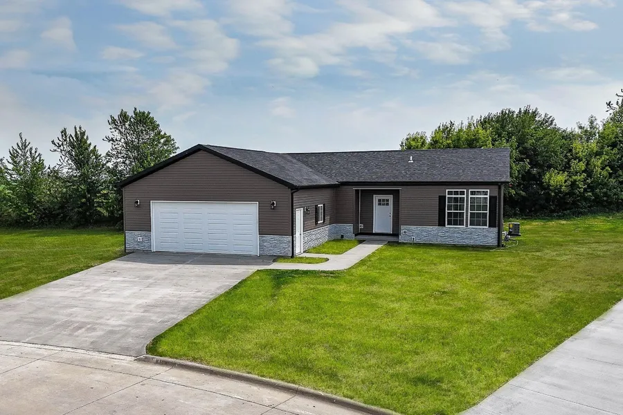 This beautiful new ranch in Farley offers comfortable, stylish living all on one level. The open kitchen features luxury vinyl plank flooring, stainless steel appliances, a tiled backsplash, pantry, and breakfast bar—perfect for everyday living and entertaining. The home includes 3 spacious bedrooms, 2 full baths, and convenient main-floor laundry. The primary suite boasts a walk-in closet and a private bath with a tiled shower. The unfinished lower level has the same lofty 9-foot ceilings as upstairs, offering flexible space for a home gym, media room, additional bedrooms, or more. A charming front porch provides the perfect spot to relax and enjoy the yard. Move in and make it your own!