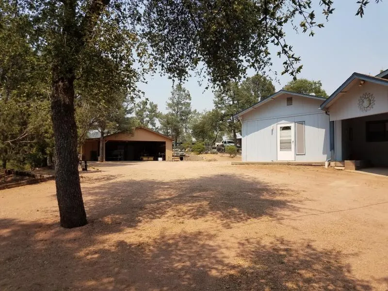 RARE ACRE RANCH-STYLE HOME PROPERTY IN TOWN WITH TALL, COOL PONDEROSA TREES ALL AROUND. COZY FIREPLACE IN THE OPEN-FLOOR PLAN LIVING ROOM. COVERED PATIOS FRONT & REAR. LARGE CABANA OUTSIDE. VERY LARGE CARPORT HAS TWO ROOMS THAT WERE ART STUDIOS AND HUGE STORAGE SPACE. SELLER HAS HAD A NICE PLACE FOR CHICKENS AND GARDEN. PLENTY OF ROOM TO PARK R.V.'s, BOAT OR PARKING FOR GUESTS.