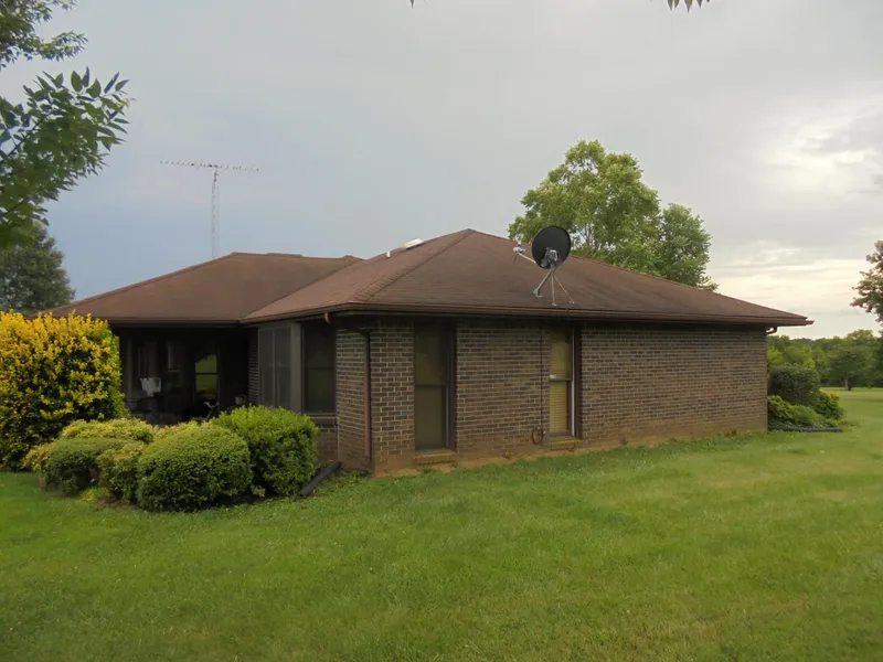 Located between Paris, Tn. and Beautiful Kentucky Lake, features three bedroom 2 bath brick and vinyl home on 8.6 acres, 2 car attached garage, large master bedroom with bath with jet tub and 2 closets, hall bath has walk-in shower,large utility room, covered back porch (enjoy viewing deer, turkey and other wildlife), blacktop driveway, roof and HVAC system has been replaced, large living room with wood burning fireplace, detached 2 car outbuilding/shop with electric, 2 roll up doors and 2 passage doors. Very nice long black top drive provides a private setting for this home.