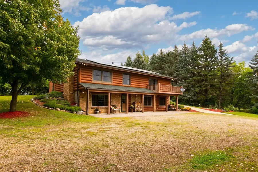 You have the best of everything! Log cabin architecture with a 1.5 acre country hobby farm like feel. The Barn, pole building, hen house, trails etc. offer possibilities and enjoyment on many levels. The home has been updated with solar panels allowing for huge costs savings. The 3 season porch has been converted into a 4 season room with gas burning stove. Enjoy lovely views of the neighboring wetlands from the deck off the main level family room. Paved Bike trails and walking paths behind the property can take you to downtown St. Bonifacius for a good meal or beverage at the Bistro. Waconia schools. Please see the feature sheet under the photos for all of the highlights of this home. Minutes to Lake Minnetonka or Lake Waconia.Sellers have received multiple offers on the home and are asking for Best and Final by 12:00 pm on Thurs. 9/9.