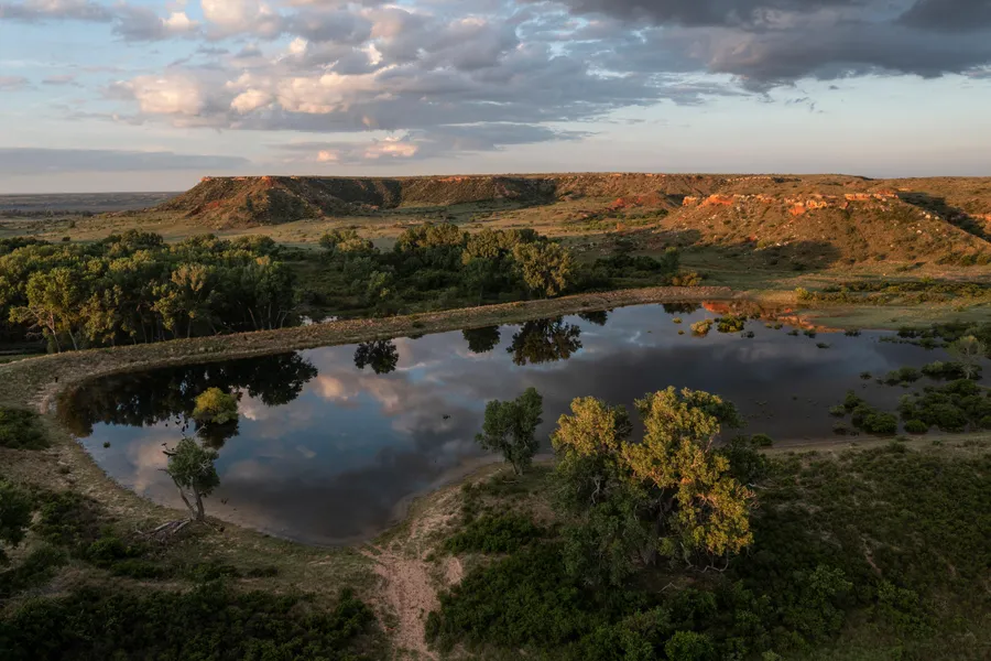 The Turkey Track Ranch was pioneered in the era of legendary WT Waggoner, 6666 and Goodnight Ranches. Boasting almost 80,000 acres under one fence and some 26 miles of Canadian River frontage, the ranch is a rare confluence of natural resources; containing an abundance of water, productive fertile grasslands, and diverse wildlife -set within rolling and rugged topography of mesas, draws, valleys and vistas interposed with open rangeland -epitomizing the western ranch lifestyle and famed fertile buffalo plains of yesteryear.