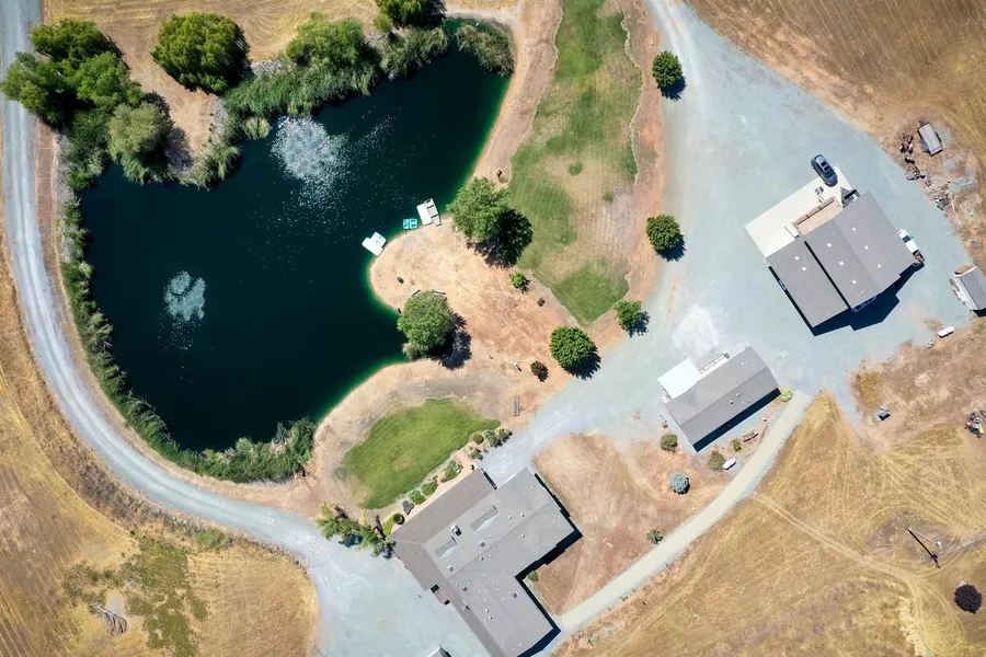 You will LOVE the setting from the moment you arrive. As you drive up you see the beautiful year around pond & home perfectly nestled in the back ground. Sit in your rocking chair under the sprawling back covered patio to enjoy the sunset views, wildlife & scenery. This property offers so much, 20 all usable acres with 2 dwellings, 3 car detached garage and an amazing 2600 sq ft shop. The main home is 3314 sqft with 4 bdrms & 3.5 bths, mud room, office/craftroom, formal living & dining area, bar, family room and spacious kitchen. The 2nd dwelling is a 1400 sqft 3/2. The shop is 2 story 2600 total sqft, the bottom level is 1300 sqft with full bath & private office the upper level is 1300 sq ft with a guest quarters, full bath, game room & deck. Shop can easily be turned into another dwelling its fully finished with many possibilities. Large RV cover. The pond is ran by separate ag well & fully stocked with fish. who needs a pool when you have your own lake. Home sweet home awaits!
