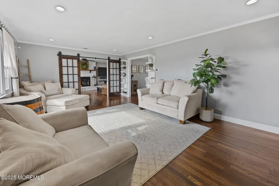 NEW ROOF, GUTTERS, SOFFIT, & FASCIA! Immaculate Ranch with Water Views. Step inside this beautifully maintained ranch and discover light-filled living throughout. The formal living room features recessed lighting, while the family room offers a cozy gas fireplace. Open-concept dining area flows seamlessly into a large kitchen complete with stainless steel appliances and ample counter space. Off the dining room, you'll find a full bathroom with a large soaking tub and an attached laundry area. Down the hall are three bedrooms and an additional full bathroom. Outdoors, enjoy an oversized yard with new vinyl fencing, an outdoor kitchen, a large deck, and a fire pit area with built-in seating. Additional highlights include hardwood floors throughout, and tankless water heater.
