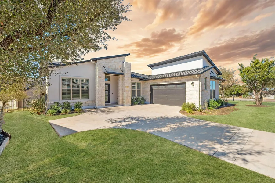 INCREDIBLE PRICE+1% buyer incentive with preferred lender. Luxury Single-Story Home in Serene Hills, Lakeway, TX – Hill Country Views & High-End Features Discover luxury living in Serene Hills, one of Lakeway, Texas' most prestigious neighborhoods. This stunning single-story home, built in 2022 by Sitterle Homes, offers 3,014 sq. ft. of elegant living space that can be used as a 3 or 4 bedroom home, a dedicated office, a bonus room or bedroom, and 3 full bathrooms and one half bath—perfect for modern living. EV Charger located in the garage. Situated on a .31-acre lot, this home features Hill Country views, a peaceful atmosphere, and access to top-rated Lake Travis ISD schools. The open-concept design showcases high ceilings, plantation shutters, and luxury finishes throughout. Gourmet Kitchen & Outdoor Entertaining The chef's kitchen is a dream, complete with double ovens, premium appliances, and an oversized island, ideal for hosting and meal prep. Step outside to the built-in BBQ and enjoy the fenced backyard—perfect for entertaining or relaxing under the Texas sky. Spacious Master Suite & Custom Features The enormous master suite is a true retreat, featuring a spa-like en-suite bathroom and a custom-built walk-in closet. Additional highlights include: Bonus room & dedicated office for work or play, Utility room with sink, counters & space for a second fridge, Metal roof for durability & long-term value, and Electric car charging station for sustainability. Prime Location Near Lake Travis & Golf Clubs. Located in Serene Hills, Lakeway, TX, this home provides easy access to: Scenic hiking & biking trails, Championship golf courses (The Hills Country Club, Flintrock Falls), Lake Travis for boating & water sports, and Upscale dining & shopping in Lakeway & Bee Cave This luxury home in Lakeway is a rare find—don't miss the opportunity to experience Hill Country living at its finest. Schedule a private showing today! Contact agent for the floorplan.