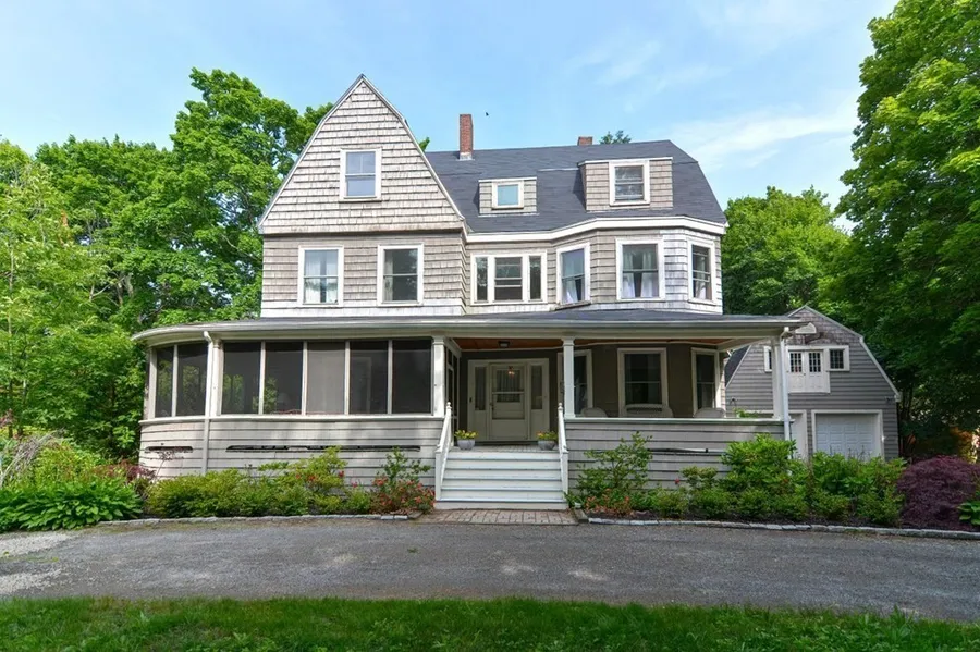 A very special home! Built circa 1900, originally as a summer residence, known as "The Spruces". Now a splendid year-round, single family home, as current owners enjoy it. Addition of two apartments (1 & 2 bedrooms) with separate driveway can provide in-law suite and/or rental income. This home retains its original charm and character including a wrap- around porch, and striking period details. It features large rooms, 5 fireplaces, high ceilings, French doors, beautiful woodwork throughout, including a banquet sized dining room with beamed ceiling and a first floor bedroom! Kitchen is bright, large and remodeled and opens up to a deck and the private, expansive yard and gardens. The detached, 2 car garage has a very functional, heated workshop above. Brand new 9 Bedroom septic system. Sited across from Coolidge Reservation, this location offers easy access to the communities, charming villages and beautiful beaches of both Manchester and Magnolia. Showings begin 7/25.