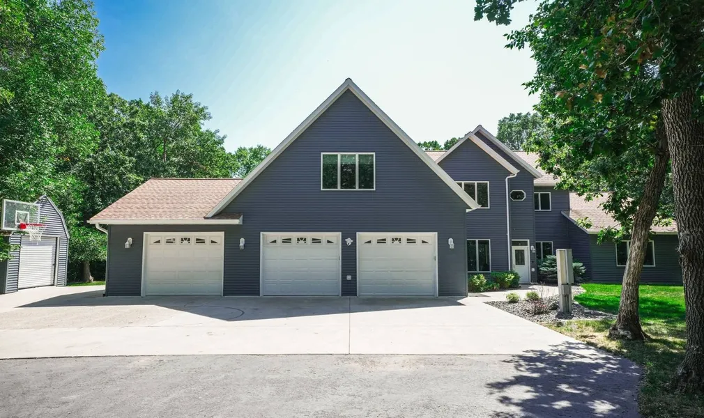 Custom Home in a Serene Natural Setting! Discover your dream home nestled in a picturesque treed acreage, offering a perfect blend of luxury and tranquility. This expansive 6,396 sq. ft. slab-on-grade residence features dual heating systems, including floor heat and forced air/central air, ensuring comfort year-round. The home boasts 5 spacious bedrooms and 4.5 baths, with impressive 10' ceilings on the main floor and 9' ceilings upstairs. The gourmet kitchen is a chef's delight, complemented by a formal dining area and a luxurious master en-suite. Enjoy relaxation in the hot tub and sauna room addition, or work from home in the elegantly appointed office with cherry cabinets. Convenience is key with a main floor laundry and a guest bedroom complete with an en-suite bath. Upstairs, you'll find a large recreation room, three additional bedrooms-one featuring a Jack and Jill bath and another with its own private bath. Entertainment is taken to the next level in the media room, where the equipment with surround sound, projector, screen, and new theater seating are not included at the price but are negotiable. The attached 3-car garage is fully finished, featuring floor heat and floor drains for added practicality. Step outside to enjoy the stamped patio, complete with a grill plumbed to natural gas and a cozy firepit, perfect for gatherings. For hobbyists and enthusiasts, the 28'x32' detached garage, known as the "Man Cave," is finished and heated with a floor drain, while the 32'x64' shop offers a wood frame, metal exterior, 12' side walls, and a heated, finished interior with epoxy flooring. Additional storage options include a 16'x32' military shed with a dirt floor and a 12'x16' yard shed with a loft. The property features a blacktop driveway and beautifully landscaped surroundings, all set within a serene wooded setting. This custom home is a true sanctuary, combining modern amenities with the beauty of nature.