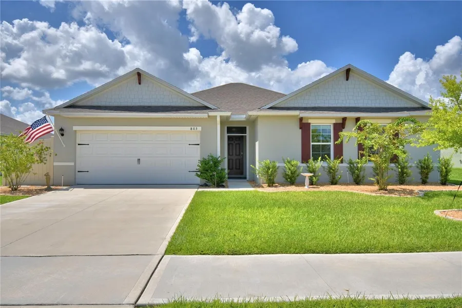 Highly upgraded features on this well kept, well decorated, home with upgrades such as wooden slatted walls, blinds and linen-like window coverings, and new luxury vinyl flooring throughout in a neutral light shade, good for any decor. This unique floor plan allows for an abundance of storage, 4-Bedrooms with ample closet space, and a wide open floor plan offering a spacious Home with Great Outdoor Space, located in a community with a Community Pool. The backyard is a highlight with a huge 35x18 paver area, perfect for hanging out, grilling, or just relaxing. There’s a swim spa for fun and exercise, and the yard is fully fenced — great for privacy and pets. Recent updates include fresh landscaping, new gutters, and a water softener for that extra touch. Security features a Smart Home. Inside, you'll love the new luxury vinyl flooring throughout — super durable and looks great. The front screened entry is perfect for enjoying the breeze and serves as an extra layer into the front main entry, and the garage has a hanging storage rack to keep things organized. The appliances all stay including washer and dryer, so it’s move-in ready. With a spacious 2-car garage and all these upgrades, this home is ready for you to settle in and enjoy. Don’t miss it!