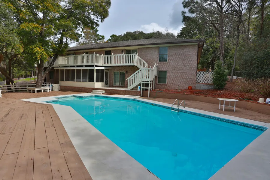 This absolutely exquisite 4 bedrooms, 3.5 bathrooms, 5,167 sq.ft, one owner lake front home located in Le Chateau Subdivision of the desirable Rocky Bayou area shows quality and master craftsmanship throughout. Looking at all the photos one will notice the attention to detail this well-kept lakefront home has to offer, but even these photos do not do it justice. You must see it for yourself to truly appreciate all the work the owners put into this home. With 156' on the lake frontage this very private oasis is dotted with mature oaks, beautifully landscaped with flowering bushes, and tropical trees, as well as, fig & pear trees with a sprinkler system that is attached to lake keeping the water bill to a minimum.
