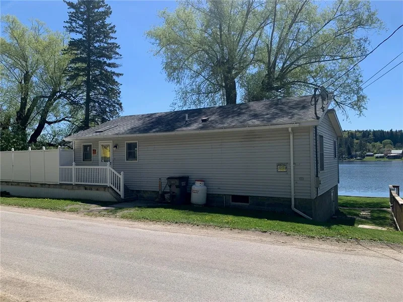 Enjoy summers, or year round residency at Smith Pond in a 960 Square ft. modular ranch home w/lg trex deck. A heated above ground pool is recessed into deck & includes pool cover. From the front door, the kitchen is to your right. Plenty of counter space, cupboards & pantry, Hooded Propane stove, double sink, refrigerator & built in dishwasher. To the side find dining areas. 3 sets of Sliding doors lead outside to enjoy the pool, overlook the pond or just relax & enjoy the scenery. Living room has a pot belly wood stove for cozy nights & skylights to brighten the days. Full bath, two bedrooms; & 3 closets. The Sale incl. a Second Lot w/ open concept Guest House. You enter this cozy house from its own wooden porch that also allows for relaxing scenic views. You enter into the main living/dining area w/ full kitchen & bath to the right. Bedroom w/ closet off the living rm. It is heated w/a propane fireplace & baseboard heat. Guest hs has 532 square ft. built on 8 yr new slab; Tax ID 126.07-01-022.0000 lot is 34.3 x 40. Some furniture can be included w/both. Storage shed across the road, space to make off street parking. Listing combines tax & assessments. Both share Well & Septic