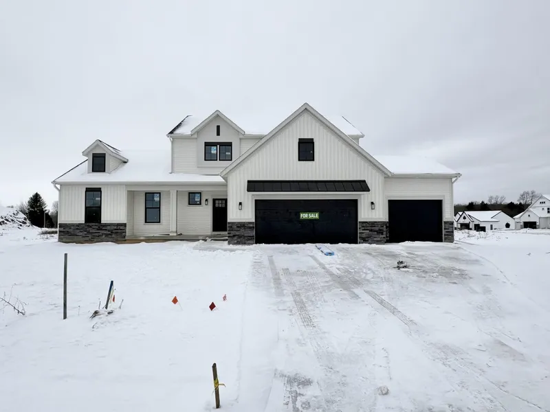 JTB Homes presents the Sycamore plan in the Railside neighborhood. This home sits on just under 1 acre in the Byron Center school district. The primary bedroom is on the main floor with 3 more bedrooms upstairs. The spacious primary features a cathedral ceiling with a large walk-in closet. It also has its own private bathroom with dual-sink vanity and ceramic tile shower. The 2-story living room has a gas fireplace and offers a great place to entertain. It seamlessly transitions to the dining area and kitchen where you find an island, pantry and solid surface countertops throughout. Main floor also has a flex room, laundry room, mudroom. The backyard features a 16x16 patio. Estimated completion is January