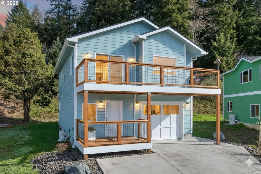 Panoramic Bay Views, with a floor plan designed to Maximize the View. This immaculate, 2022-built home features a sophisticated reverse floor plan, strategically placing the main living area on the upper level to capture sweeping, unobstructed views of Tillamook Bay. The thoughtful, open-concept design ensures the incredible scenery is the centerpiece of your daily life-whether you're entertaining guests from the chef's kitchen (featuring quartz countertops and modern finishes) or simply enjoying a quiet morning coffee on the deck. A True Residential Sanctuary: Situated in a peaceful neighborhood, this is a non-short-term rental community, offering the highly coveted benefit of a true residential feel, not a revolving door of weekend tourists. This property is ideal for the full-time resident or discerning second-home owner seeking tranquility and quality of life over rental income. Enjoy the peace of mind that comes with a hardwired propane Generac generator and a low-maintenance lot, providing a turn-key, lock-and-leave lifestyle just moments from Garibaldi's marina and dining. This home is the perfect blend of modern comfort and coastal exclusivity.