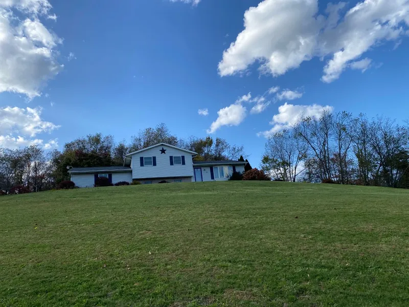4 BR/3 bath, multi-level home on 4.78 acre lot w/panoramic view of the country side, L shaped LR and DR combo with fully equipped kitchen, large rec room, spacious master suite, large basement that can be finished for additional square footage, 2 car attached garage with a bonus detached garage, relaxing back deck with a fenced in in-ground pool and hot tub, STOP-please do not go to the property without an appointment, if you want to see the property turn at the bottom of the driveway, do not access the driveway w/o an agent present.