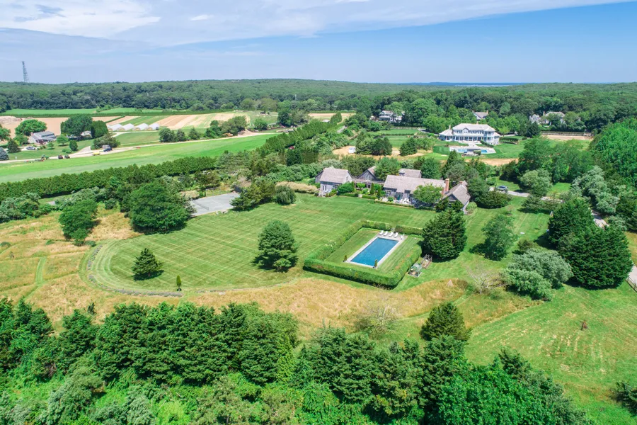 Photos don't do justice to this exquisite property minutes from Bridgehampton Village. Well-hidden at the end of a long winding driveway, this unique compound has been included in the prestigious East Hampton Garden Club House and Garden Tour and featured in the recently released book: "Behind The Privets: Classic Hamptons Homes." by Barons and Rumbough. Encompassing nearly seven acres of manicured lawns, rolling meadows, pool and tennis court, this is a property rarely found. Conceived as a private country retreat merging spectacular living spaces with two authentic artist studios, this 8,000+/- sq. ft. barn-style home features a majestic great room with 25' ft ceilings and walls, a large fireplace and beams and floors constructed entirely from solid pine. The great room and adjacent dining room and open kitchen form the heart of the home and flow naturally out French doors to a south facing blue-stone patio with exceptional views of open sky and beautiful landscaping. Five distinct barns are connected by a striking 120' ft breezeway which looks out upon a beautiful English style garden. The space is artfully divided into separate zones dedicated to gathering, cooking, entertaining, sleeping and studio space. The Eastern wing accommodates a master suite with dual dressing rooms and an impressive library also constructed entirely of solid pine. A western wing features two guest rooms plus an entire guest annex with three additional bedrooms and a central charming den. Both the stunning heated gunite pool and clay tennis court are away from the house and partially hidden by mature privet hedge, making the year round views extraordinary. Additionally there is a two-car garage and a large finished basement. Designed to fit the spirit of its magical location, the elegant simplicity of this barn complex is the perfect setting for modern living.