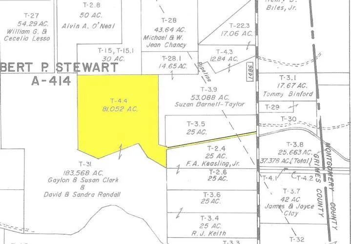 Research Parcel InformationFROM MONTGOMERY GO WEST ON HWY 105 APPROX 5.1 MILES TO DOBBIN. TURN RIGHT (NORTH) ON FM 1486 AND GO APPROX 8.4 MILES (JUST ACROSS THE GRIMES COUNTY LINE) TO PROPERTY/ADDRESS/SIGN ON THE LEFT.