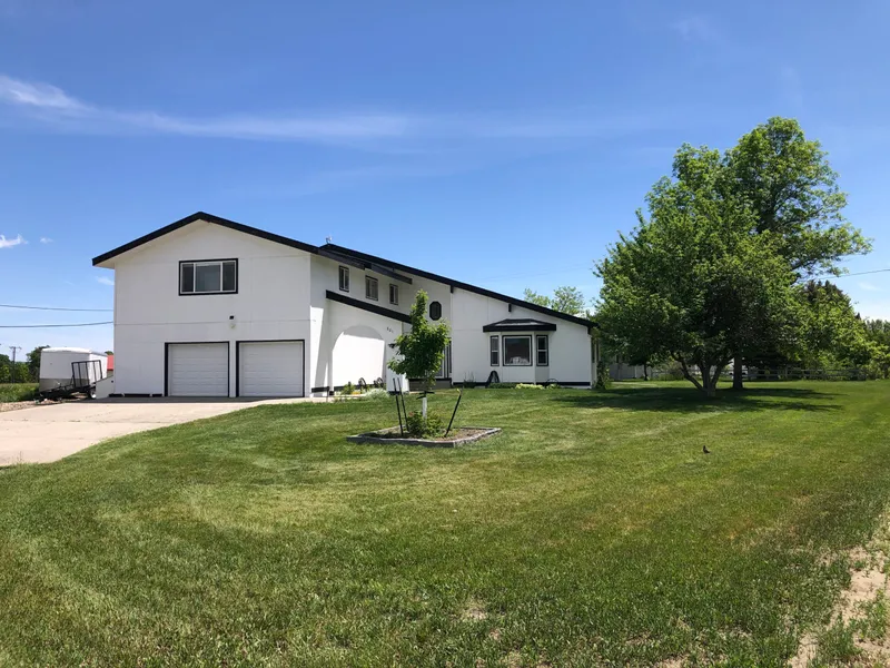 A sprawling 4 bedroom home on a 15400 square foot lot in Big Timber. The Contemporary Style living room is filled with light and offers a dramatic entrance to the home with its vaulted and beamed ceiling.
