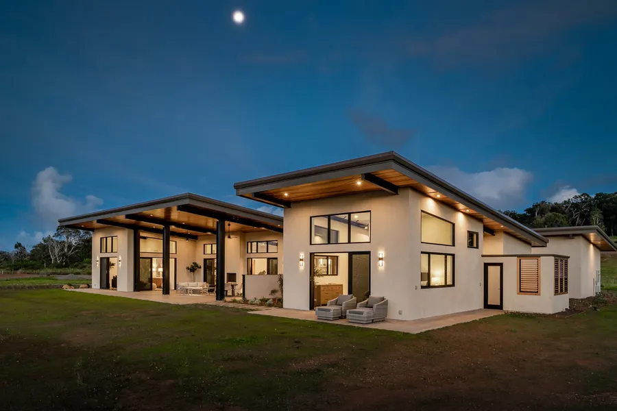 Contemporary and clean. Spacious and serene. New. Ocean-view. High-end, high-ceilings, high-tech home and cottage. Connected--High-Speed Fiber-optics. Quality construction. Sustainable materials. LEED GOLD certified. Exquisite craftsmanship, design and details. Situated on a fee simple parcel approximately 25.422 acre parcel with two modern homes on 2.62 acres, the remainder of the parcel subject to an exclusive easement for agricultural, utility and related purposes as set forth in a grant of easement agreement to be provided to prospective purchasers.
