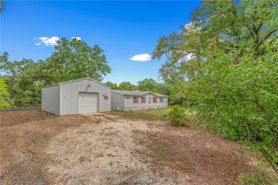 Tucked away on 1.56 acres, you will love the seclusion & privacy you get here. This is an extraordinary opportunity to own your own little slice of heaven only minutes from BCS. The property is covered in majestic oaks and hardwoods and backs up to Lake Bryan, in a peaceful quiet area, less than 8 minutes to town and only 15 minutes to Texas A&M. The well maintained mobile home is 1,586 square ft with a 2,100 sqft metal building addition offering a 2 large rooms, a rec room that was once used for show dogs, a kitchen, bathroom all attached to the main home by a breezeway. The large rec room could easily be converted into more bedrooms. The attached garage is a huge shop and has plenty of room for storage. Unrestricted and ready for all your animals. This is what you've been waiting for! Call today to schedule a private tour.