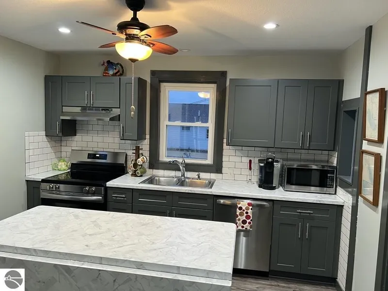 n the Village - Prime Location! Two story - 3 Bedrooms - 1 full & 1 half Bath Home - Main Floor Primary. Completely Remodeled Kitchen with New Appliances, Microwave and Keurig Coffee Maker. Large Walk-in Laundry Room adjacent to Kitchen with Storage, Closet, & Pantry. Completely Remodeled Main Bathroom with Tub/Shower Combo. New Luxury Vinyl Floors Throughout. Tongue & Groove Wood Walls. New Furnace; A/C; & Hot Water Tank. Beautiful Original Woodwork adds Character & Detail. Lots of Windows. Large Wrap Around Enclosed Porch/Sunroom. Expansion Possibilities for a Garage. Quaint Walkabout Village Offers Grocery, Hardware, Historic General Store, Ice Cream/Fudge Shop, Restaurants, etc., and Thurston Park with Beach & Boat Ramp access to the Beautiful Upper Chain of Lakes. Short Drive to Bellaire, Torch Lake & Lake Michigan, Ski Resorts, & Championship Golf Courses. Easy Access To Elk Rapids, Traverse City, Charlevoix, Petoskey. THIS HOME IS A MUST SEE TO APPRECIATE! Short Term Rentals currently allowed. Furnishings Negotiable.