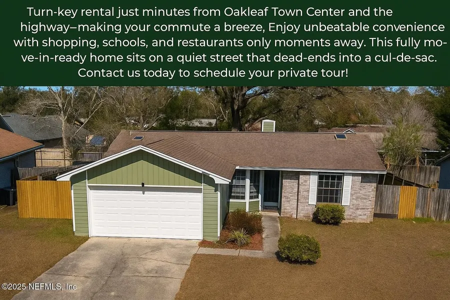 Turn-key rental just minutes from Oakleaf Town Center and the highway-making your commute a breeze. Enjoy unbeatable convenience with shopping, schools, and restaurants only moments away. This fully move-in-ready home sits on a quiet street that dead-ends into a cul-de-sac, offering peace and privacy. Walk inside to luxury vinyl plank flooring, fresh paint and open concept living. Contact us today to schedule your private tour!