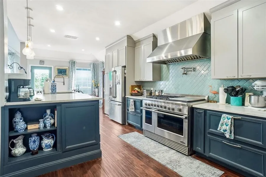 Exquisite dining area compliments the gourmet kitchen all perfect for entertaining. Custom kitchen designed by a chef with all the extras. Custom tile backsplash with a potfiller over a commercial grade DCS Fisher & Peykel stove. Separate bar area with a commercial Uline bar fridge. Oversized quartz countertop island is 40 inches tall and serves as preparation area as well as setting area. Custom pendant lights add a special touch over the island. Kitchen opens up into the comfy living area, with decorative jade marble accents on a gas fireplace. The stunning crystal chandelier in the dining are completes the look for the complete entertaining aspect. The welcoming entry way leads to a rotunda with cathedral ceilings and art niches. The front room with double glass french doors could double as an office or a bedroom. Primary bedroom is large enough for a sitting area located in front of the picture windows. Small bedroom off of the primary can serve as a nursery or an office. The primary bath has a jacuzzi tub as well as a shower and his and hers sinks. Walk in closet in primary bath. Back patio is perfect little retreat for relaxing in the evenings or drinking coffee in the mornings. The Southridge area is highly sought after because of the convienient location which is close to shopping and medical facilities. Jogging trails, playground and tennis courts are within walking distance. Come enjoy walking through this unique property with too many perks to mention.