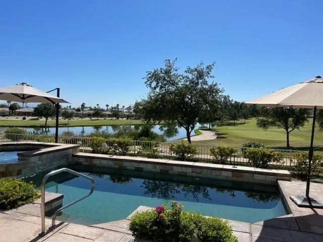Currently rented from NOV. 1, 2025 Thru APRIL-15-2026. Available in other months. November through April: $13,000.00 per month. May through October: $8,000.00 per month. This beautifully upgraded Juniper model sits above a double fairway, overlooking a lake with panoramic golf course and mountain views. The east-facing rear yard features a saltwater Pebble Tec pool & spa, BBQ, and electric shades. There are 5 TVs with DVR boxes, plus a 65-inch TV for watching outdoors by the pool. The living room features a dramatic view overlooking the pool, lake, and golf course-power sun shades on the view windows and shutters on the others. The living features a fireplace. The kitchen features a Sub-Zero refrigerator & freezer, a wine fridge, a double oven, a microwave, and granite counters. The master suite features a large walk-in shower, a spacious walk-in closet, a spa tub, and amazing views of the golf course and the surrounding mountains. suites with w/walk-in closets. Set up for entertaining or just relaxing by the poolside. Wi-fi, cable TV included. Trilogy La Quinta is a gated 55+ community featuring golf courses, tennis, pickleball, bocce ball, aqua aerobics, billiards, a full-service Coral Spa, a cafe, and numerous other activities. Book this vacation retreat now!