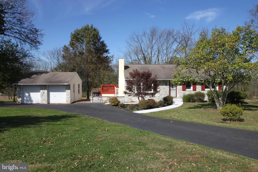 Charming rancher located on a large lot in Perkiomen Valley School District. Enter into the welcoming living room bathed in light, brick wood burning fireplace, wainscotting, and laminate floors. The dining room has laminate flooring and french doors that enter into the kitchen. The country style kitchen has been recently renovated with vaulted ceilings, skylight, oak beams, tons of cabinets and counter space. Also equipped with laminate flooring, and outside exit to a deck area and patio. Down the hall from the living room you will find a main bedroom with a full bathroom that has been recently renovated, and two additional bedrooms and a hall bathroom. There is a full basement with new oil tank and heater, with an outside exit as well with a storage area and a garage door for easy access to accommodate larger items. The detached two car garage completes this home.