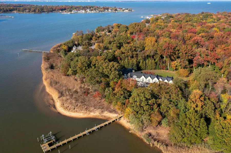 Exquisitely sited on a premium and private 7+ acre lot with 350ft of sandy beach water frontage, this idyllic French Country villa offers over 8,500 square feet of interior living space and boasts picturesque views of award-winning landscaping (by McHale Landscape Design, Inc.) and the serene waters of Bodkin Creek. Constructed in 2007 by Pyramid Builders and designed by the local architecture firm Alt Breeding Schwarz; this magnificent masterpiece leaves no details compromised in presenting a home of distinction. The long driveway, private setting, and endless views invites tranquil living and lavish indoor/outdoor entertaining. The expansive, waterside bluestone patio with in-ground Pebble-Tec pool and spa, built-in BBQ grill with stone pizza oven, impressive screened porch with full bath and waterfront firepit provides everything needed for gatherings both big and small. Inside, the grand entry, soaring ceilings, gleaming Brazilian hardwood floors, stunning stair railing design, dual sided fireplace and welcoming wet bar set the standard for the epitome of ultra luxe waterfront living. The magnificent Great Room frames the water view through floor to ceiling windows and doors and the architecture almost outshines the view with its floor to ceiling mahogany built-ins, barrel vaulted/ beamed ceiling details and stone fireplace. The gourmet kitchen overlooking the view and pool area is designed to making entertaining effortless and the catering kitchen provides an additional full size refrigerator and freezer, built in oven, dishwasher, microwave and wine fridge to satisfy the professionals. Each of the property's four bedrooms offers private ensuite baths and the luxurious main level primary suite with 10ft ceilings features 2 separate baths both with heated marble floors, 2 walk-in custom closets, laundry room and beverage bar with microwave. Additional noteworthy features include 8ft custom 5 panel doors with pewter hardware, custom Marvin windows, custom millwork and mahogany cabinetry throughout, Crestron Smart home system, indoor/outdoor A/V system, Geo-Thermal HVAC system and a 3 car garage. The 150' ft private pier is sure to please any boating enthusiast with the 40,000lb boat lift, 2 jet ski lifts and water and electric. Gibson Island Club is just a few miles away where membership (by invitation only) provides access to the country club, pool, beach, tennis, deep water marina, award-winning Charles Blair Macdonald designed 9-hole golf course, swimming, croquet, skeet shooting, and more. This property provides the perfect location for quick access to hiking and biking in Downs Park, heading over to Gibson Island or jumping on Rt. 100 to get back to Baltimore or Washington, DC. This property truly offers the complete waterfront experience! Perfect for a weekend retreat or full-time residence. Welcome Home!