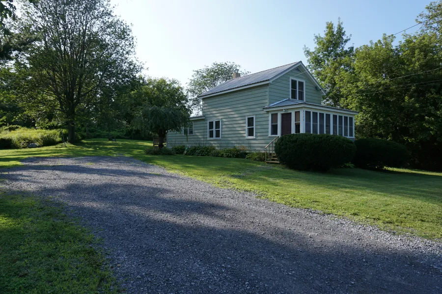 LOCATION, LOCATION! Charming farmhouse situated on 1 acre of wooded land close to shops and major highways. This quaint home offers a tastefully remodeled kitchen which includes: soft close cabinets/drawers, concrete counters, stainless steel appliances, new lighting, and refinished hardwood floors. Enjoy your picturesque rolling hills backyard connected to 20 acres of local family owned land. Or snuggle up on those autumn days on the enclosed front porch or next to the wood stove. Don't let this one pass you by, call today for your private showing!