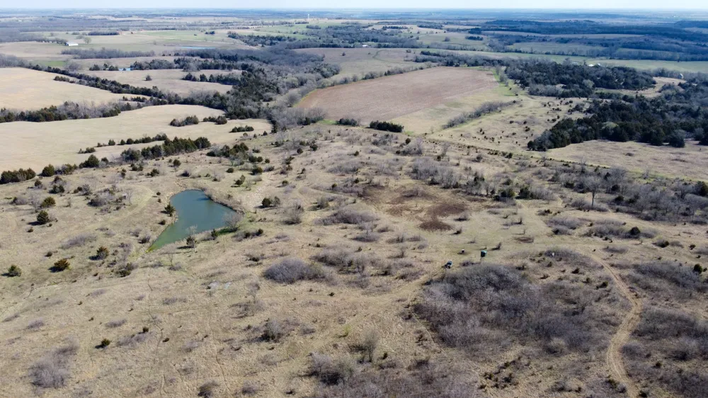 Talk about seclusion and privacy, this farm has 82 acres of awesome habitat that you can't see into from the road. This farm lies southeast of Garnett and is ready to hunt right now while also allowing for more habitat improvements and a blank canvas for food plot architecture. With a great pond, topography, and some wooly cover surrounded by agriculture fields, the farm sets up well and comes with a Redneck on a ten-foot tower overlooking a newly cleared acre ready to plant into the food plot of your choosing.