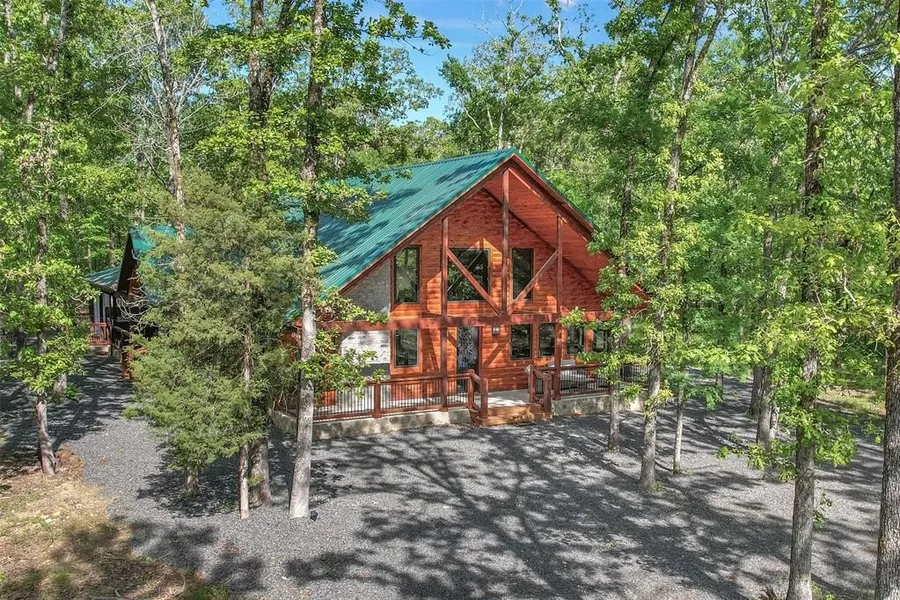 The Mystic River Retreat, a serene escape nestled amidst nature's embrace is a newly built one & a half story cabin carefully designed with two-story ceilings, rustic-modern design, & walls of windows. A 5BR & 4BA luxury cabin has an EXPANSIVE outdoor deck, lounge chairs & 7-person jacuzzi alongside a running creek & is located in the heart of Hochatown near Broken Bow's most popular attractions. Mystic River boasts 3,700 SF of perfectly designed suites for privacy and a 2500 SF of covered patio with full dining, living areas & dedicated space for lounging. Inside, the Custom Kitchen has an organizational system for an ultimate cooking and entertaining experiences. The oversized island is great for preparing meals together. On the first floor, two luxurious suites await, ea with Smart TVs, king or queen-sized bed, & ensuites offering a retreat-like experience. A third bedroom, bathed in natural light from expansive windows overlooking the surrounding forest features two queen-sized beds. A conveniently located hall bath stands ready to accommodate with a private sink, toilet & shower. The Primary Suite has a private patio leading to the outdoor amenities & its ensuite bathroom is designed for the ultimate luxury experience with an oversized shower, (4) body sprays & a TOTO toilet with a Bidet. Custom his & her vanities with LED framed mirrors provide space for getting ready. The second floor includes an inviting cozy lounge area where you can unwind & reconnect. Two additional bedrooms, complete with queen-sized beds & Smart TVs, offer a peaceful sanctuary for rest & relaxation. A full bathroom serves these rooms, ensuring comfort & privacy for all guests. Indulge in ultimate relaxation in the jacuzzi, where up to seven guests can enjoy the soothing massage jets. Hammocks sway gently in the breeze, inviting you to unwind amidst the sounds of nature, lounge chairs on deck & a large fire pit, surrounded by 12 Adirondack chairs finish off the outdoor experience!