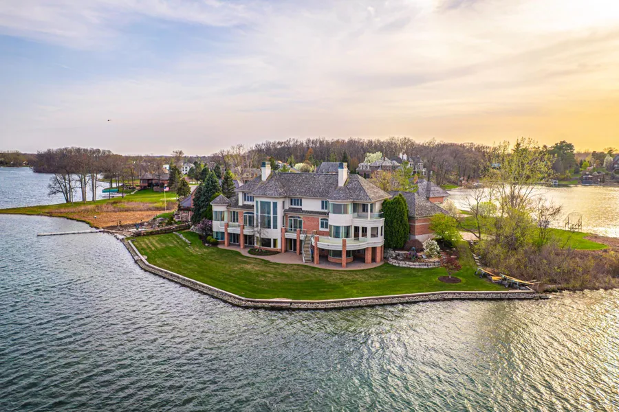 A rare opportunity to own one of Silver Lake’s most prestigious estates, offering 378 feet of prime all-sports lake frontage and over 16,000 square feet of exquisite living space. This architectural gem blends classic elegance with unmatched craftsmanship, featuring five bedrooms, eight bathrooms, and luxury finishes throughout. Set behind Indiana Buff limestone pillars, the exterior features brick, limestone, and EFIS/Dryvit. A grand entrance with 10-foot mahogany doors opens to a marble foyer and sweeping marble staircase, revealing breathtaking lake views. The main level is built for upscale living and entertaining with Brazilian cherry floors, a custom limestone fireplace in the living room, and a richly appointed library with Pearwood doors, curly cherry coffered ceiling, and onyx fireplace. The gourmet kitchen is a showstopper with Downsview cabinetry, granite and glass countertops, and top-tier appliances: Sub-Zero, Wolf, Miele, double ovens, warming drawer, and butler’s pantry with wine storage. The primary suite features a custom Pearwood platform bed, marble fireplace, and a lavish ensuite with Kohler waterfall tub, Ralph Lauren-style cherry closet, custom glasswork, and Downsview cabinetry. An elevator with matching marble flooring services all three levels. The lower level is an entertainer’s dream, offering a catering kitchen, wet bar, wine cellar with custom glass doors, home theater, dance floor, exercise room, and spa with sauna. Flooring features a mix of marble, white oak, and quartzite, with custom onyx and limestone fireplace surrounds. Each secondary bedroom includes a private ensuite with Downsview cabinetry and premium tile. The laundry room features a shower for lake days, while the heated 4-car garage offers a 5th car lift, storage cabinetry, and sink. With radiant heating on all three levels, smart home automation, and integrated security, this estate redefines lakeside luxury. This is more than a home—it's an elevated lifestyle on one of Michigan’s most desirable lakes.