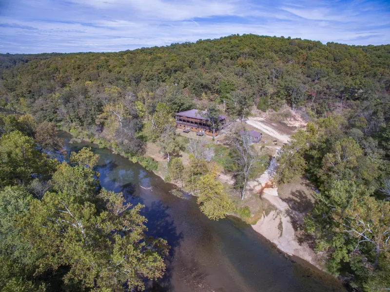 This is an incredible opportunity for some lucky person or group to be able to purchase an incredible lodge with caretaker or manager's home on the beautiful clear flowing Meramec River. Known as the Meramec River Lodge this has been totally renovated over the last several years. There are now 12 nice overnight guest rooms each with their own full bath and kitchenette. The main floor has seating for about 200 people and is highlighted by a large 2 story stone fireplace. There are large decks overlooking the river and grounds. There is so much history and so much potential for a business to run as a B&B, a wedding venue, family or corporate retreat, reunions, church or any other activity that warrants an incredible building deep in history and with so much natural beauty. Located just about 10 minutes south of Cuba, MO and about an hour and fifteen minutes S.W of St. Louis. This area of Missouri is well known for its tourist destinations. This is being sold at an incredible price!