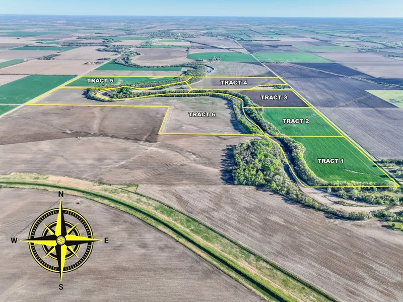 TERMS: We will sell each tract high bidders choice and by the acre, your bid times the number of acres specified for each tract plus a 10% buyer premium to arrive at the contract price. Earnest money will be $25,000 each for tracts 1 & 2, $50,000 each for tracts 3 & 4, and $65,000 each for tracts 5 and 6. Those earnest money amounts will be due at the conclusion of the auction with the balance due upon Sellers submission of merchantable title and closing. Closing date shall be on or before July 15, 2025. Closing fee and title Insurance fee will be split 50/50 between Seller and Buyer. Selling subject to easements, restrictions, roadways, rights of way and Seller approval. This property is not selling subject to financing or inspections. Interested buyers need to view the property prior to the date of the auction and have financing available and any inspections performed prior to bidding. Fence lines, boundaries, and acreages are not guaranteed. All pertinent information is available upon request.