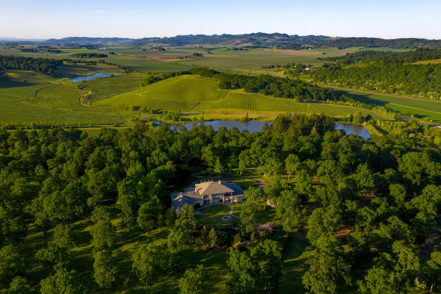 Breathtaking Tuscan estate on 82.64 acres with water rights! Extensive luxury finishes include private wine cellar, spacious balcony overlooking gorgeous treetop views, 12' x 48' heated lap pool, free-standing hot tub, gourmet kitchen, dual-side fireplace in great room and formal dining. Bright, spacious bedrooms, each with their own private en suite, while the master suite boasts sitting area with fireplace as well as his and her bathrooms with large walk-in closets. Entertainers' dream with formal dining, butler's pantry and music system from interior to exterior to enchant quests along the patios overlooking charming gardens and water features. Meticulous grounds offer walking paths, expansive gardens, Oak savannas, fir & native perennials. ~45 acres vineyard potential with 240'-320' elevation and Chehulpum silt loam soil. Wrap-around driveway and gorgeous courtyard welcomes guests while a detached 3-bay garage with workshop offers plentiful options for vehicle storage or agricultural use. Enjoy peace of mind with the backup generator, transfer system and phone line in a peaceful rural setting, yet convenient to Salem!