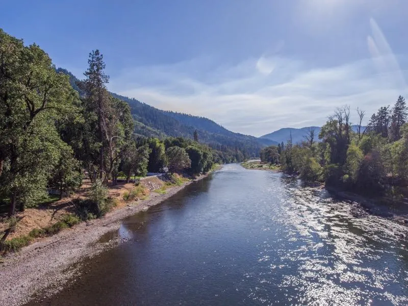 Dramatically reduced! Gorgeous custom home on the Rogue River with horse property on 1.13 level acres at the end of a country lane. Built in 2001 this green, energy efficient Sing home is 1972 sf with 3 bd 2 baths (2bd according to assessor). It is surrounded by an 1800 sf covered deck and sits above a spacious 1972 sf shop/garage. The open floor plan includes hardwood and tile floors and beautiful French windows that are divided by etching. Kitchen has custom wood cabinets, Corian counters and pullout pantry. The main living area and the lg master bd have wood cathedral ceilings and French doors that open onto the deck overlooking the river. The master bath has double sinks, cusom cabinets, a giant shower with dual shower heads and a lg walk-in closet. The horse setup has a 4 stall barn with hay storage and paddocks. The property is fully fenced with chain link and vinyl. RV parking, garden area, great well per owner, cement stairs leading down to the river and so much more.
