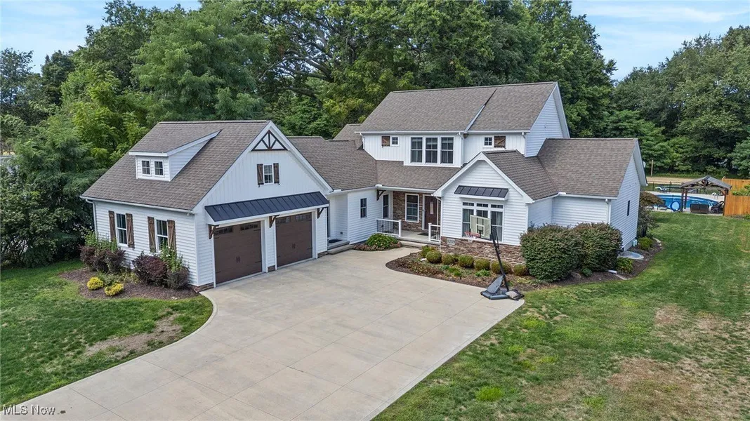 Don't miss this rare opportunity to own a serene 1-acre lot backing up to Veterans Park in Mentor! This custom-built, one-of-a-kind home is open and airy, featuring 10-foot ceilings, cathedral accents, and expansive windows that fill the space with natural light. The first-floor master suite offers two large walk-in closets and a luxurious en suite bath. The inviting family room showcases gleaming hardwood floors and a cozy gas fireplace, while the spacious kitchen is complete with a butler's pantry, ample storage, and a dining room overlooking the backyard. A dedicated first-floor office provides the perfect space for working from home. Rounding out the main level are a laundry room, half bath, and convenient drop zone off the garage entry. Upstairs, you'll find two generously sized bedrooms, each with its own private full bath and walk-in closet. The partially finished basement provides even more living space, featuring a designated bedroom area, full bathroom, egress windows, and a large recreational area. Step outside to your own private oasis! Enjoy a covered back patio, sparkling saltwater pool, and volleyball court. Perfect for both relaxation and entertaining. This home truly offers it all: space, comfort, and endless opportunities for making memories.