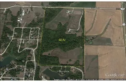 33 of the 60 acres are wooded and 27 acres mixed grass pasture. Also included is a very nice 30x60 metal barn and a separate metal equipment shed. Front half of the property is complete with high tensile horse fenced pasture, separate lots, round pin and a riding arena.