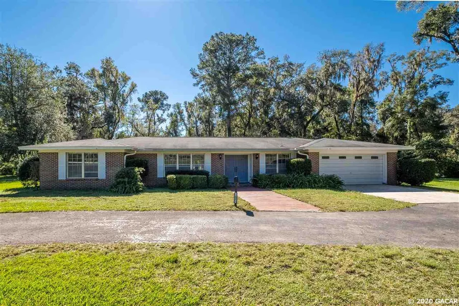 Want a 4.15 acre lot in the middle of town with NO HOA fee?! Look no further! This home has the "good bones" of a sturdy, 1968 brick home but has been completely remodeled inside (less than 3 years ago). Walk in the large, double doors to find an open floor plan with luxury vinyl plank flooring, neutral paint tones and recessed lighting. Off to your right is a sliding barn door that opens to reveal a bonus room that you could easily make a playroom, office or formal dining room. The gourmet kitchen is a chef's dream that is light and bright with sleek, stainless steel appliances, an apron front sink, quartz countertops and a subway tile backsplash. There is no shortage of rooms in this 4 bedroom, 2.5 bath stunner. Don't be concerned with a GRU water or wastewater bill as this home has a well on site and a septic tank and drainfield, both also replaced in the last 3 years. A salt system water softener was also part of the remodel. The location, right off of 24th Avenue, is convenient to the University of Florida, The Oaks Mall, Celebration Pointe, the Tioga Town Center and much more. Make an appointment to view this beauty today.