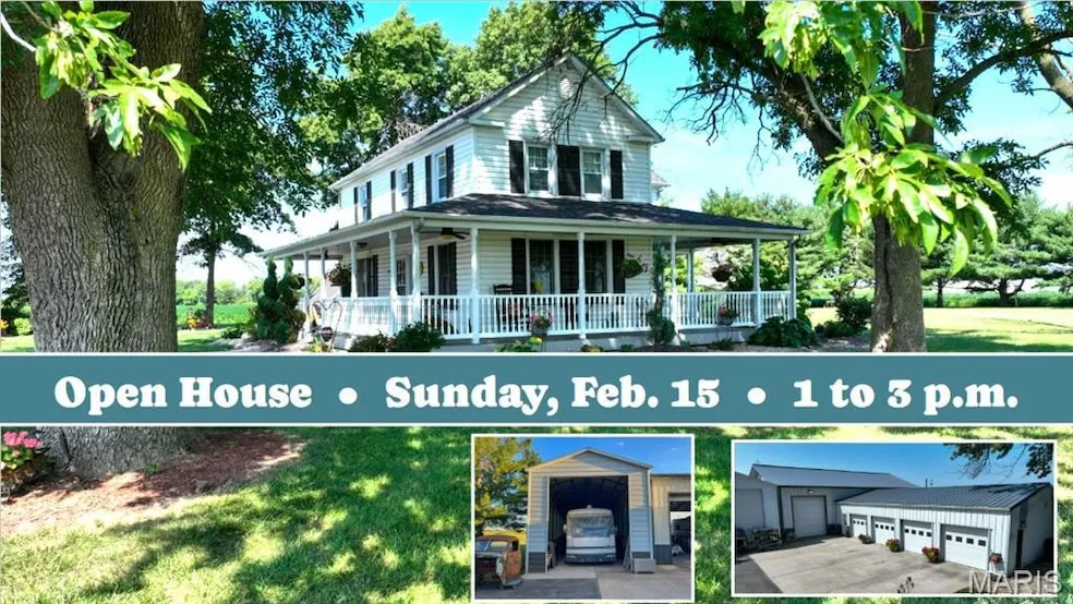 Mechanic s Dream on 4 Acres This property is built for those who need serious shop space. The crown jewel is the massive garage workshop, complete with its own bathroom and a professional-grade car lift perfect for mechanics, hobbyists, or anyone with big projects in mind. Alongside it, you ll find an RV garage and an additional storage garage, giving you room for equipment, vehicles, or toys of every size. The 3-bedroom, 1-bath farmhouse offers classic country comfort, featuring a wraparound front porch, a functional country kitchen, and spacious rooms with timeless character. Upstairs holds all three bedrooms, while the partial basement adds extra storage. Set on 4 acres along State Route 4, this property combines rural charm with unmatched practicality for anyone who lives to work in the shop. I-55 @ Exit 33.