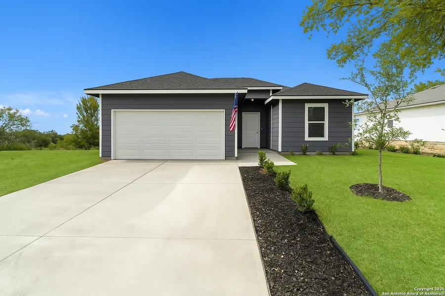 This beautiful single-story home, built in 2025, offers 3 bedrooms and 2 baths with a modern, open, and bright floor plan designed for comfortable living. Hardly lived in, the home feels like new and showcases 10-foot ceilings and 8-foot doors throughout, creating a spacious and elevated feel. Elegant wood-like tile flooring flows seamlessly through the main living areas, with plush carpet in the bedrooms for added warmth and comfort. The kitchen and bathrooms feature convenient automatic faucets, combining style with functionality. The open-concept design between the living, dining, and kitchen areas creates an inviting atmosphere perfect for both relaxation and entertaining. Step outside to a spacious backyard, ideal for outdoor gatherings, gardening, or simply unwinding in your own private retreat.