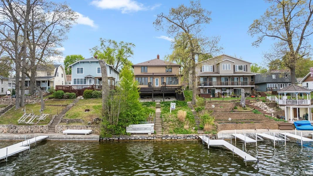 *Home is now empty and professionally cleaned, along with new deck boards* 6 bedroom lakefront retreat on beautiful Webster Lake. Located in desirable Epworth Forest, this beautiful property offers 50 ft of lake frontage and nearly 3,000 square feet. The raised view looks out on middle of the lake — a hard to come by view. Designed with lake life in mind— the 23x33 living area is truly the heart of the home. Perfect for large gatherings, entertaining, or year round living. Not to mention the huge 3 seasons room that walks out to the multi level deck with brand new deck boards (Oct. 2025), overlooking spectacular views of Webster Lake. The main level also offers a nice kitchen space and full bath/ laundry combo. Upstairs can be accessed from 2 different staircases and offers 6 bedrooms including spacious bunk rooms, along with 1.5 baths. Additional features of the home include: hardwood floor, statement stone fireplace, and 5 year old roof. Many of the furnishings are negotiable. Enjoy all that Webster Lake has to offer from swimming, skiing, boating and fishing. Whether you are looking for a summer home large enough for all your guests or a year round home, this home is truly a home that can be cherished for generations to come!
