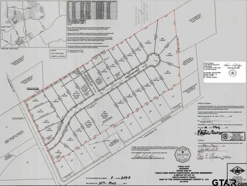 Phase ll of Peach Tree Ranch Lots available just north of Bullard, Texas. Min SQFT 1,800 Exterior 80% brick, stone or hardi-plank Min Roof slope 9:12 Side Entry Garage (Door Not visible from CR 153) Outbuildings of same material as the house Front and Rear setbacks 25'-0"